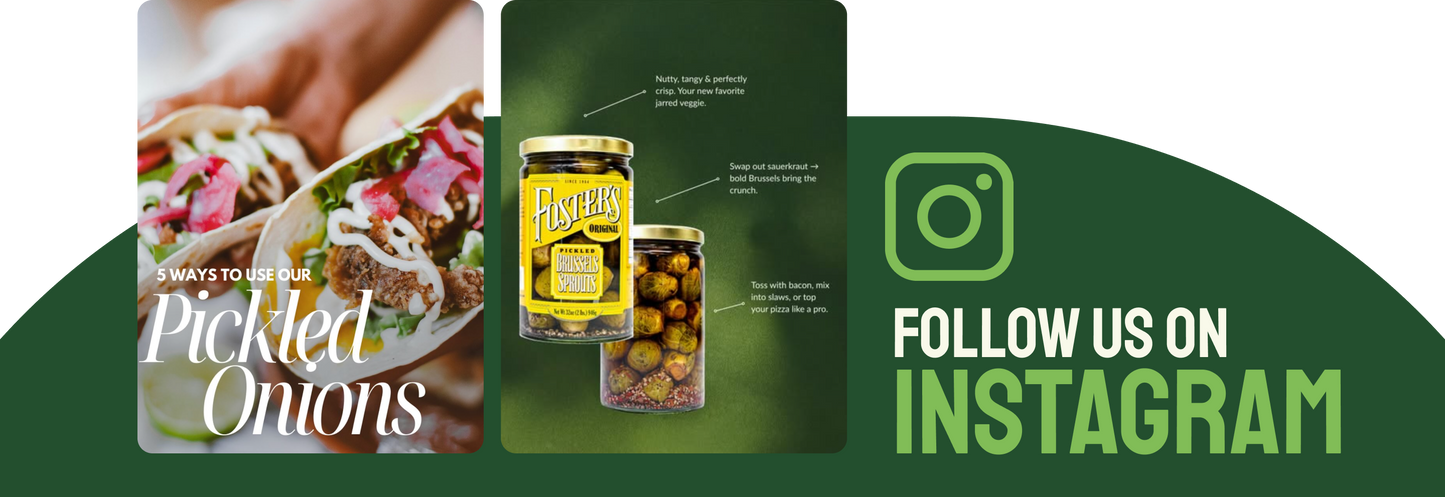 Over time, we've expanded the Foster's Since 1984 brand to include pickled green beans, pickled carrots, pickled brussels sprouts, pickled okra, pickled garlic and dill pickles. From our family's farm, to your family's table, enjoy Foster's with those you love. – Bryan & Kevin
